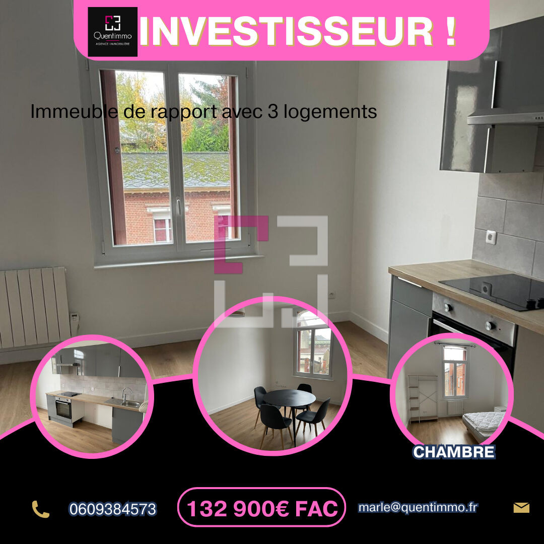 RENDEMENT EXCEPTIONNEL (13,6% BRUT) ? HIRSON GARE ? IMMEUBLE 3 LOTS votre agence Quentimmo, vus propose ce bien idéalement situé à deux pas de la gare d'Hirson et des commerces. Cet immeuble de rapport est une opportunité "clé en main" pour tout investisseur cherchant un autofinancement généreux. Une Rentabilité qui parle d'elle-même ?Prix de vente : 132 900 euros FAI. ?Revenus locatifs mensuels : 1 504,84 euros CC (soit 18 058 euros/an). ?Rentabilité brute : 13,6 %. ?Taxe foncière : 3 655 euros (déjà intégrée dans le calcul de performance). Composition et État Locatif (100% Loué) L'immeuble est composé de 3 logements sains, avec des baux en cours et des locataires en place : 1.T2 de 48,40 m² : Loué 439,84 euros CC (DPE : D). 2.T2 de 48,70 m² : Loué 570,00 euros CC (DPE : E). 3.T4 de 70,10 m² (4 chambres) : Loué 495,00 euros CC (DPE : D). Les Atouts Techniques ?DPE maîtrisés : Pas de passoires thermiques (G ou F), vous investissez sereinement vis-à-vis des nouvelles normes. ?Gestion simplifiée : Chauffage individuel électrique (pas de charges collectives de chauffage). ?Structure : Raccordé au tout-à-l'égout, immeuble entretenu. Localisation Stratégique L'avenue François Mitterrand est l'un des axes les plus pratiques d'Hirson : ?Gare SNCF à 150 mètres (idéal pour les locataires sans véhicule). ?Commerces, pharmacie et restaurants à pied. Note aux investisseurs : Malgré la taxe foncière locale, le prix d'acquisition extrêmement bas au m² permet de dégager une rentabilité nette supérieure à 10%, un chiffre rare sur le marché actuel. Le petit "plus" pour votre vente : Pour rassurer un acheteur sur la taxe foncière, vous pouvez préciser que les charges récupérables (ordures ménagères) sont incluses dans les loyers perçus, ce qui vient "gommer" une partie de cette charge. Contactez moi vite au 06x09x38x45x73 Sandrine DEWAELE (EI) Agent Commercial - Numéro RSAC : 2022AC00033 - SAINT QUENTIN.