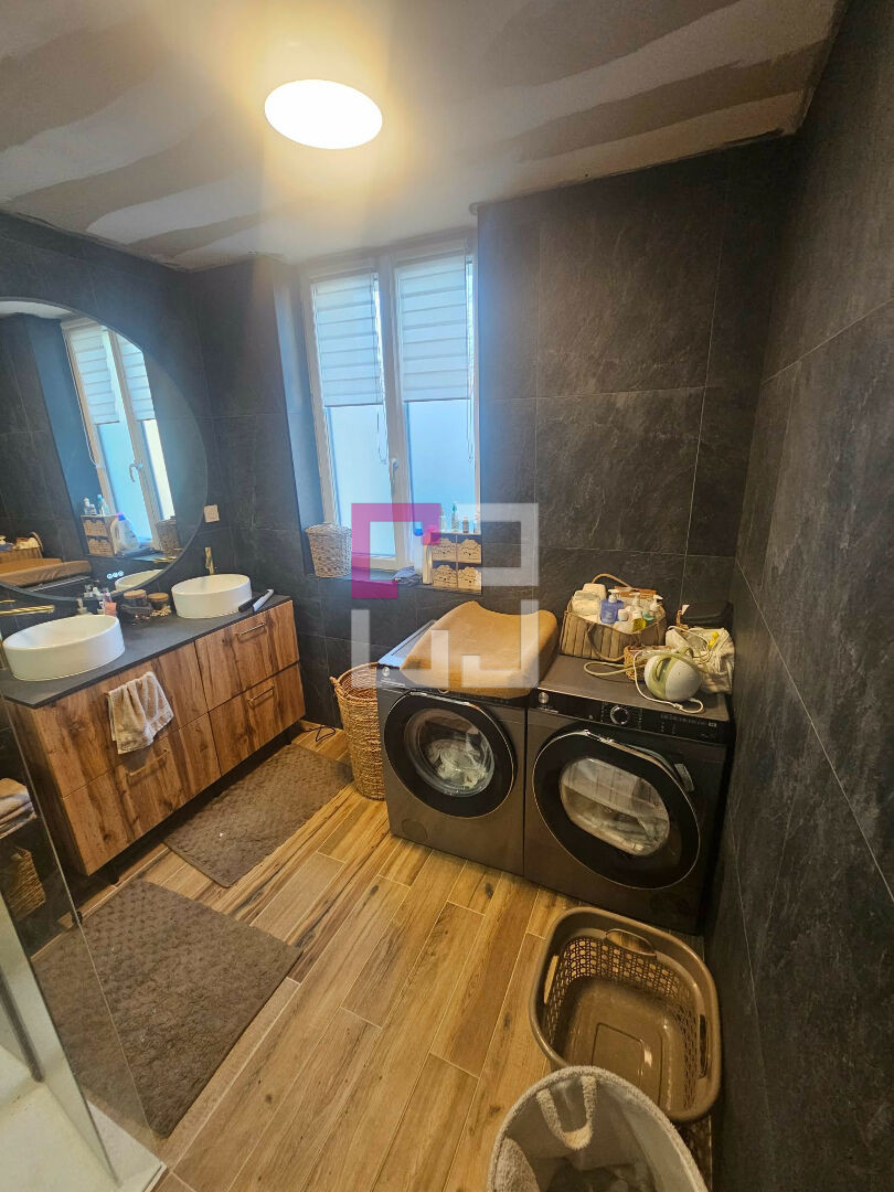 Maison de ville, 106 m² , 2 chambres, Garage, Jardin Ribemont (02240) Votre agence Quentimmo vous proposent cette maison de ville de 106 m², construite en briques et couverte en ardoises. Elle comprend au rez-de-chaussée une entrée ouverte, une magnifique cuisine aménagée et équipée avec îlot de plus de 60 m², un agréable salon, , une salle d'eau avec douche à l'italienne et un WC suspendu. A l'étage, un palier dessert deux chambres mansardées. Cave accessible de l'extérieur, garage attenant, terrain clos, remises et bâtiment de service en fond de jardin. Confort assuré grâce à une pompe à chaleur air/air, un poêle à granulés, un ballon thermodynamique, double vitrage PVC, isolation extérieure et tout-à-l'égout. ? Bien fonctionnel, idéal résidence principale