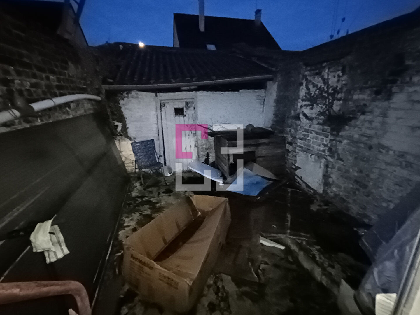 En exclusivité pour cette maison de ville mitoyenne à rénover comprenant au rez-de-chaussée: cuisine aménagée ouverte sur séjour, salle d'eau avec wc. Au 1er étage: palier, 2 chambres communicantes Courette et dépendances. Travaux à prévoir! Chauffage non fonctionnel. Achille MEESSEMAN (EI) Agent Commercial - Numéro RSAC : - .